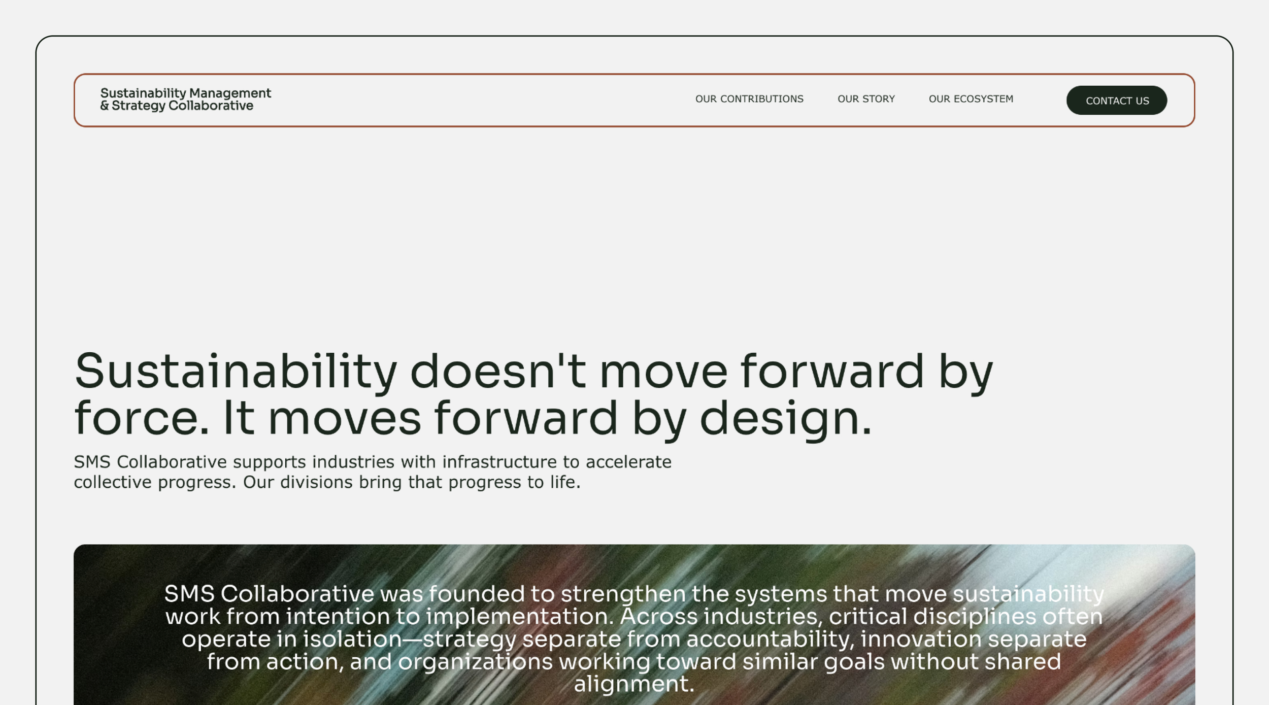 The imagery system draws from nature, but avoids literal representation. Instead of static or overly defined visuals, the approach focuses on movement, light, and abstraction. Soft blurs, shifting textures, and layered compositions create a sense of momentum and adaptability. These visuals are less about capturing a single moment and more about expressing a continuous state of motion. The result reflects how SMSC operates, not through force, but through balance, responsiveness, and sustained forward movement.